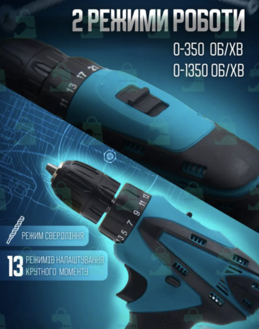 Шуруповерт предназначен для закручивания и выкручивания шурупов в древесину, пластмассу и другие материалы. Этот инструмент обладает 17 режимами вращения, включая режим «реверс», что дает фору многим аналогичным . Также, следует отметить возможность активации LED-подсветки, что поможет решать многие задачи в трудных местах и при достаточно плохом освещении. Шуруповерт хорош в своем деле. Скорость вращение высокая. А все это возможно благодаря мощному электродвигателю, который питается от емкого аккумулятора.