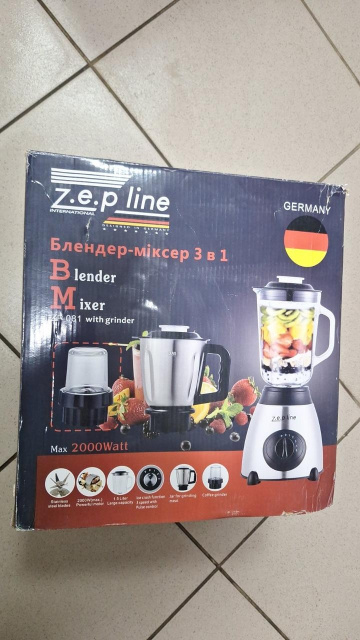Немецкий блендер с кофемолкой и мясорубкой со стеклянной чашей 3в1 Zepline ZP-081 стакан для смузи 2000Вт. Стационарный блендер 5 скоростей.