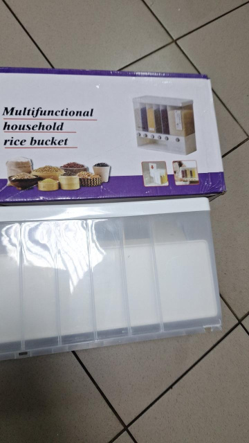 Кухонный органайзер для сухих сыпучих продуктов, предназначенный для хранения продуктов, в нем есть шесть отсеков, разделенных съемными перегородками для предотвращения смешивания продуктов. Перегородки можно снять для увеличения объема того или иного отсека. Таким образом, увеличивается объем отсека для любимых продуктов, а оставшиеся небольшие отсеки используются для хранения реже используемых зерен.