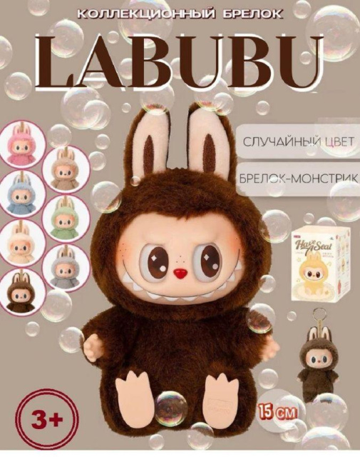 Брелок Лабубу Labubu "Монстры" Pop Mart трендовая плюшевая игрушка-сюрприз 15см Коричневый