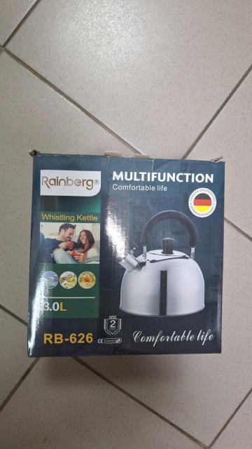 Чайник Rainberg RB-626 очень качественный и удобный. Чайник Rainberg является антибактериальным и обладает высокими показателями экологической чистоты. Даже спустя много лет этот чайник будет прекрасно выглядеть и сохранит свои свойства. Чайник Rainberg-626 это покупка, которая прослужит многие годы! Ручка в чайнике не нагревается, она выполнена из бакелита. Чайник оснащен свистком, всегда напоминающим закипелую воду. Он поднимается посредством механического нажатия на специальный клапан. Подходит для газовых, электрических, стеклокерамических, галогеновых плит и можно мыть в посудомоечной машине.