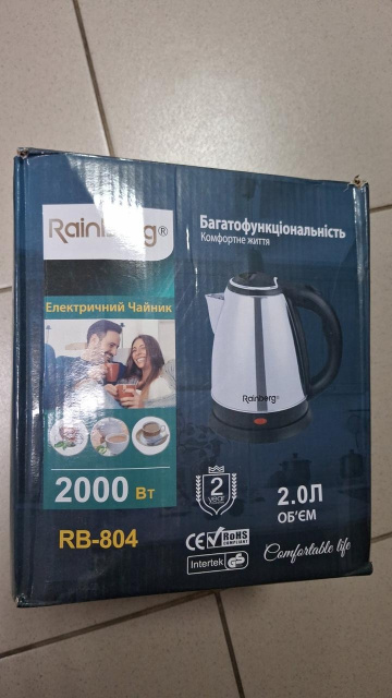 Описание Электрочайник Rainberg RB-804 дисковый 2л Серебристый(686974)