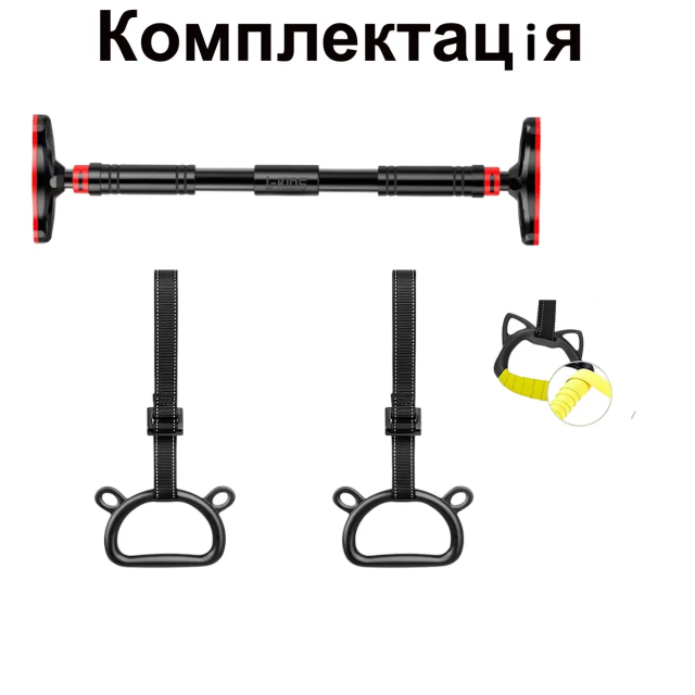 Турник без винтов 60-103 см для подтягивания с кольцами до 300 кг в дом TYRNIK-1