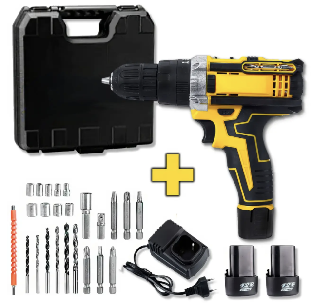 Набор шуруповерт аккумуляторный с насадками screw driver sets yellow 12v Полный комплект в чемодане!