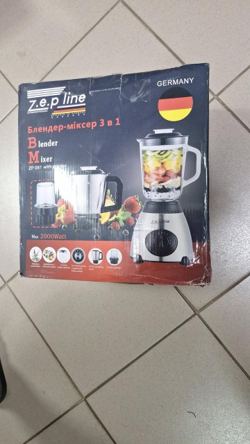 Немецкий блендер с кофемолкой и мясорубкой со стеклянной чашей 3в1 Zepline ZP-081 стакан для смузи 2000Вт. Стационарный блендер 5 скоростей.