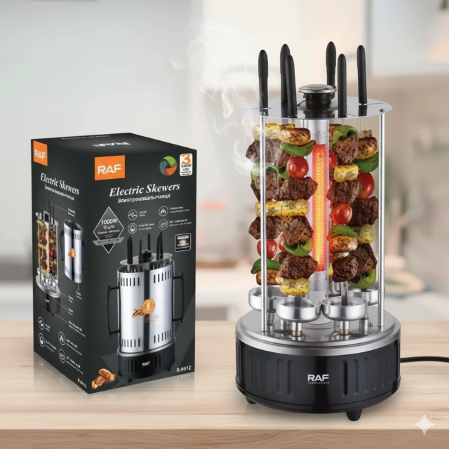 Электрошашлычница вертикальная на 6 шампуров RAF R.8612 1000Вт Шашлычница электрическая бытовая для дома