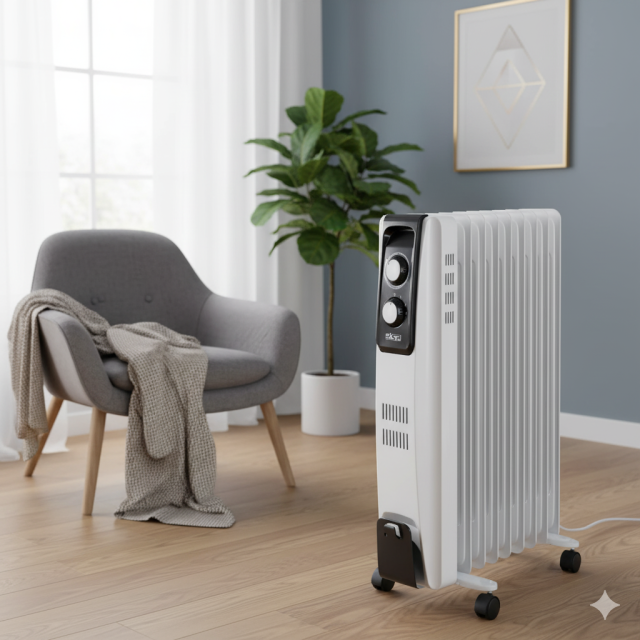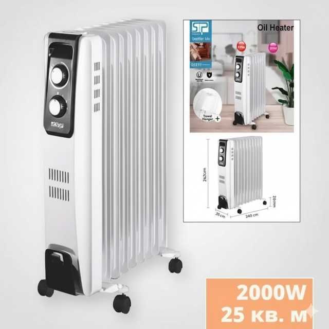 Масляный обогреватель DSP KD-3021 - отлично подойдет как для основного, так и для дополнительного обогрева помещений. Качественное производство, мобильность, благодаря наличию ножек на колесиках и ручек для транспортировки, многоступенчатой регулировке мощности, 9 секций и предельная мощность в 2000 Вт, всё это направлено для обеспечения обогрева помещения и приданию комфортной температуры.