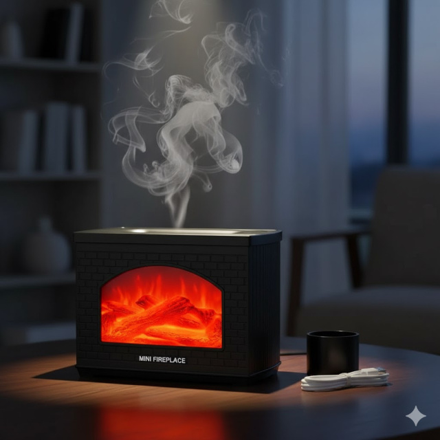 Увлажнитель воздуха аромадиффузор для дома в виде камина - это стильное и функциональное устройство, которое поможет улучшить качество воздуха в вашем доме, создавая уютную атмосферу и приятный аромат. Этот необычный настольный увлажнитель воздуха имеет уникальный дизайн, что делает его прекрасным дополнением к любому интерьеру. Основная функция увлажнителя воздуха - увлажнение и очистка воздуха в помещении. Он использует ультразвуковую технологию, которая превращает воду в мельчайшие частицы пара и распыляет их в воздухе. Аромадиффузорная функция позволяет добавить воздуху приятный аромат, используя специальные эфирные масла.