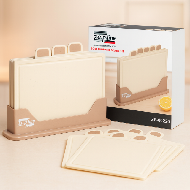 Набор разделочных досок Zepline ZP-00220 Brown Style — это сочетание практичности, уюта и современного дизайна. В комплект входит 5 предметов: четыре доски для разных типов продуктов (мясо, рыба, овощи, хлеб) и эргономичная подставка для аккуратного хранения.