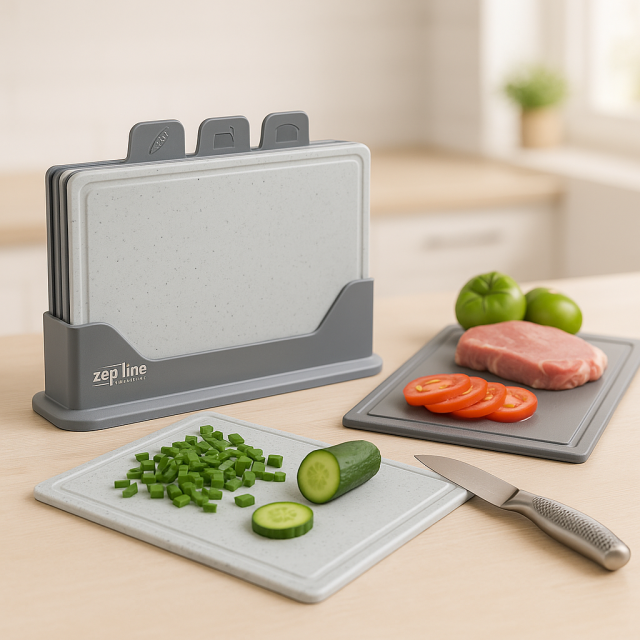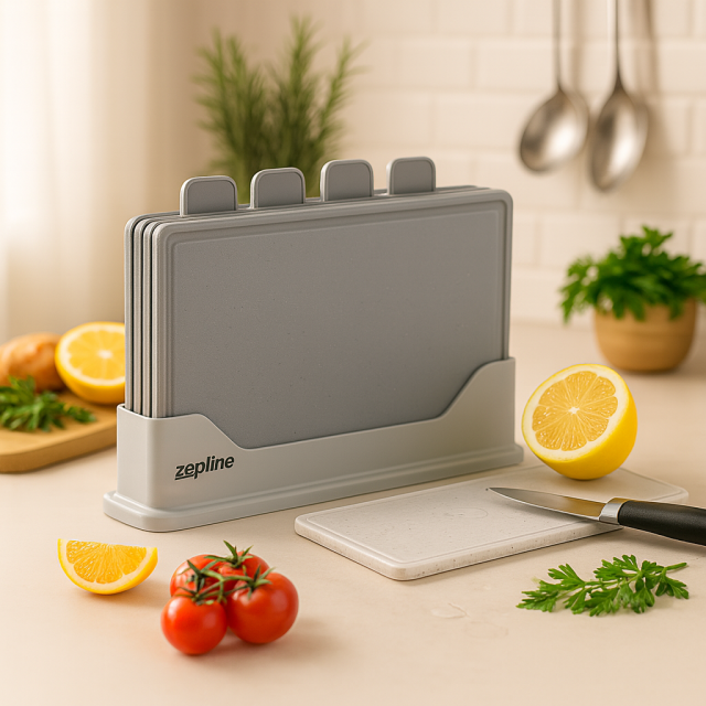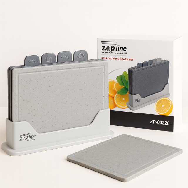 Набор разделочных досок Zepline ZP-00220 Grey Modern — это современное решение для кухни, где важны стиль, чистота и удобство. В комплект входит 5 предметов: четыре функциональные доски для разных продуктов (мясо, рыба, овощи, хлеб) и подставка для компактного хранения.